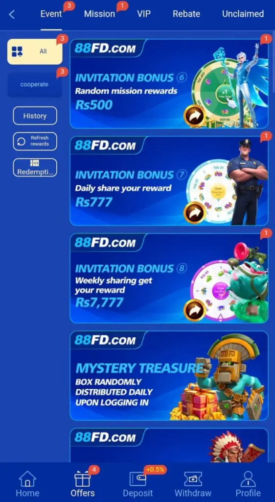 88FD Game offers a referral system. When you invite friends, the app rewards you with commission or bonus points. Because of this feature, many users actively promote the game.
